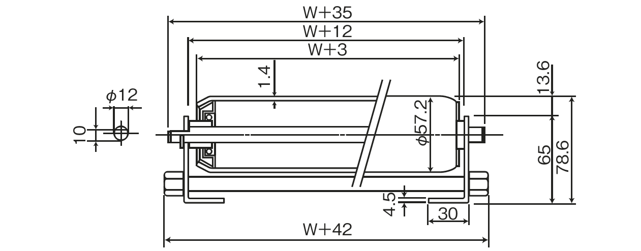 Φ57.2mmの中荷重ローラ。大型搬送物に適し、メカニカルブレーキローラにも対応する汎用タイプです。